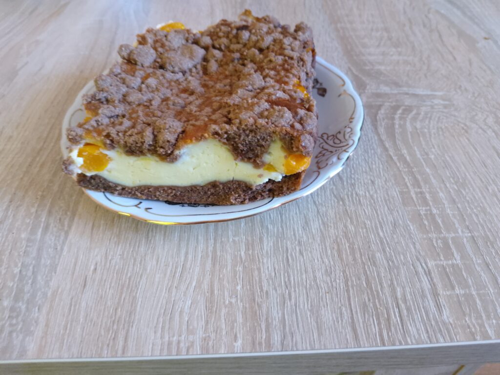 🍰 Sernik z brzoskwiniami i kruszonką