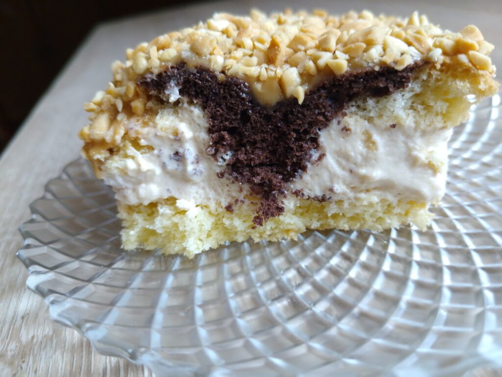 ✨ Result: a fluffy two-tone sponge with a hint of vanilla pudding, creamy caramel filling, rich dulce de leche and crunchy salted peanuts. A simple but spectacular cake that melts in your mouth 💛