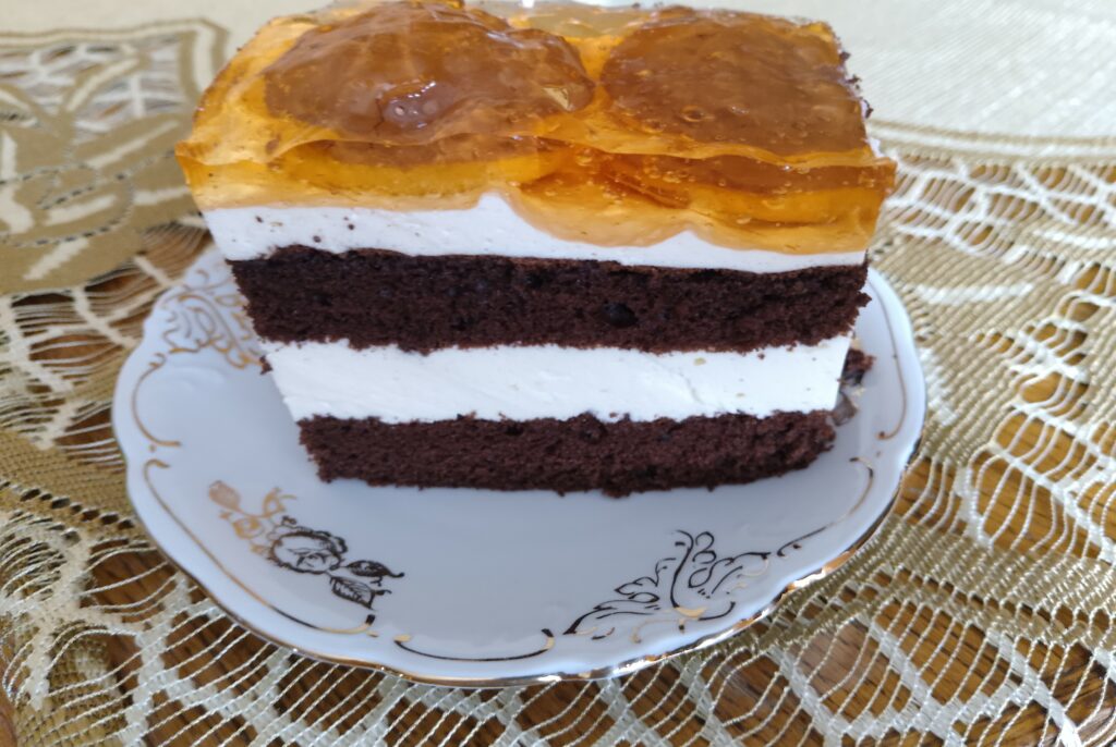 Efekt: „Pomarańczowa Fantazja” zyska elegancki, błyszczący wierzch – delikatny krem, czekoladowe delicje i pomarańczowa galaretka tworzą lekkie, orzeźwiające połączenie.